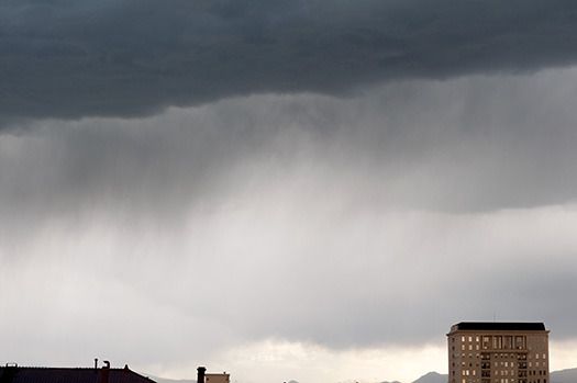 Off to the west you can see it all happening but nothing here yet. As the clouds losing water approach you can actually see it wet on the other side of the street and the street itself wet while still dry on the parking lot. The next moment everything is wet.