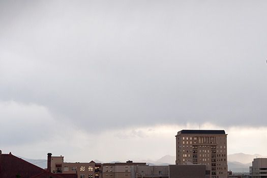 7:30AM I'm thinking, oh that's a lot of weather stacked up. Skyscape, this is the sort of thing artists dream up. This could be big weather all day. But no. It spread out and stayed gray and uneventful all day until evening around 8:00PM the cloud mass creeped toward the city from the west as it does regularly each day this season, and dropped its water.