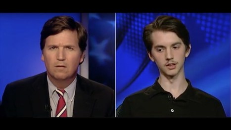 Source pic is Tucker Carlson on his show patiently speaking with a college student who wants a man on his college board dismissed for speaking with Trump. But there were previous reasons too. Video here at YouTube video